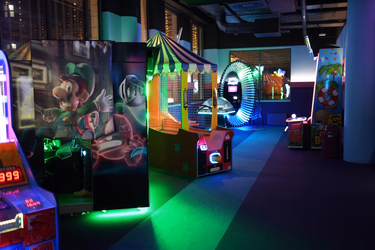 Zwischen Retro-Klassikern, VR-Abenteuern und flackernden Neonschildern könnt ihr euch hier prächtig amüsieren.